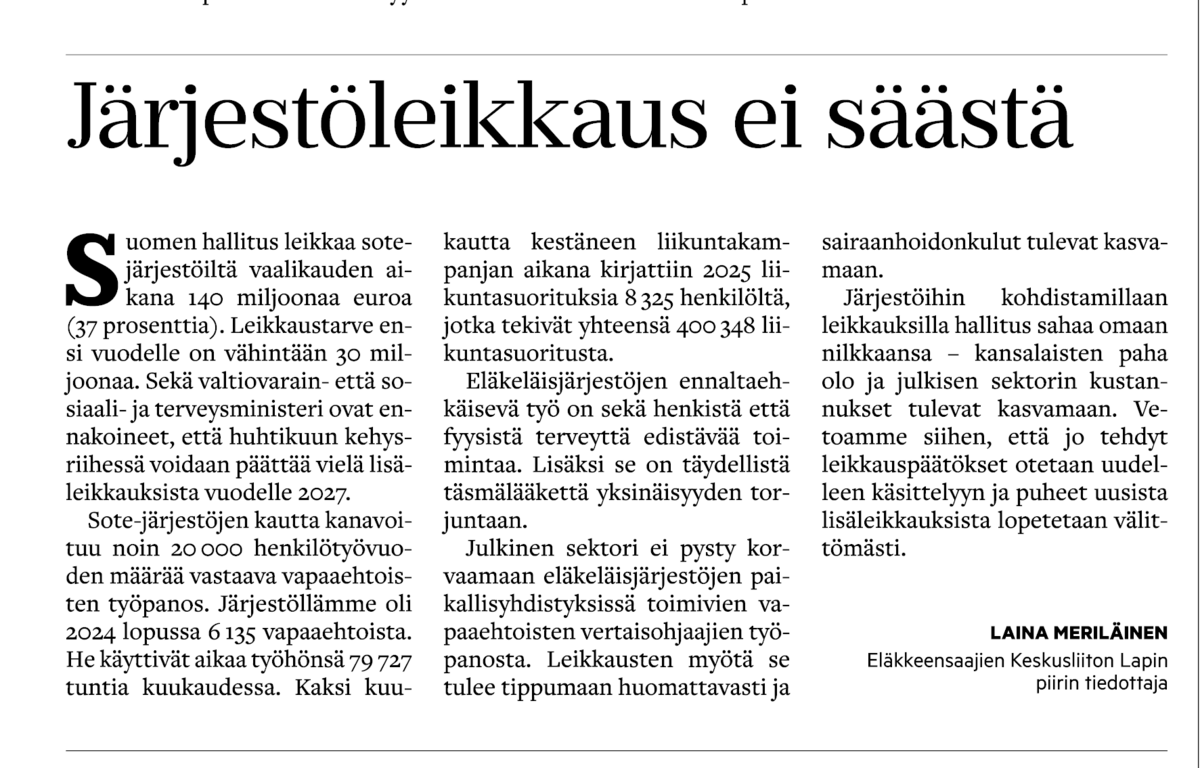 Kannanottto Eläkkeensaajien keskusliiton ja Eläkeläisten keskusliiton yhteinen.